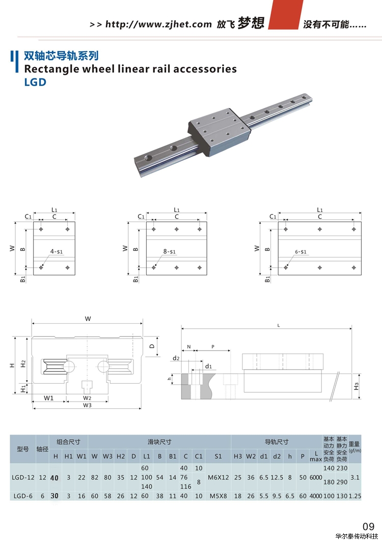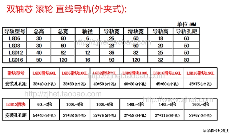 外置雙軸芯直線(xiàn)導軌 LGD6,LGD8