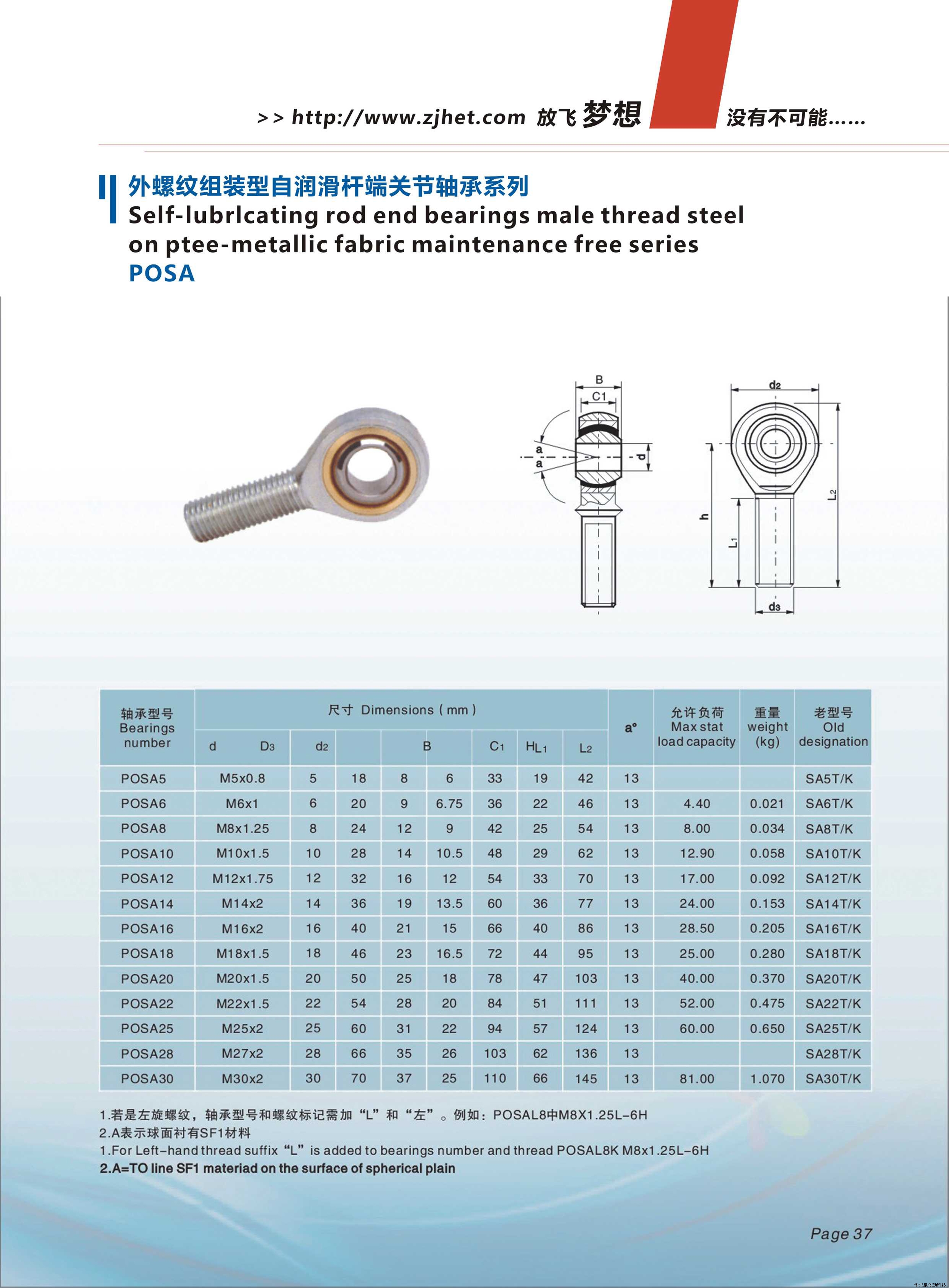 POS外螺紋油嘴桿端關(guān)節軸承